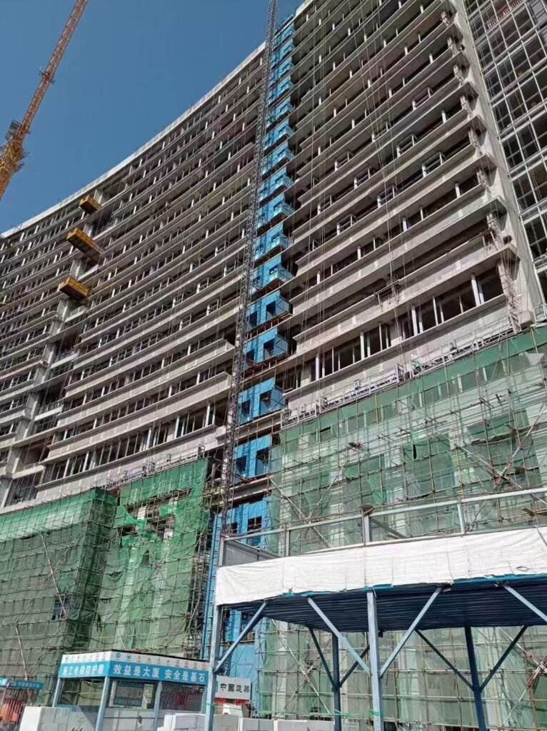 Access solutions supporting curtain wall installation and exterior works.